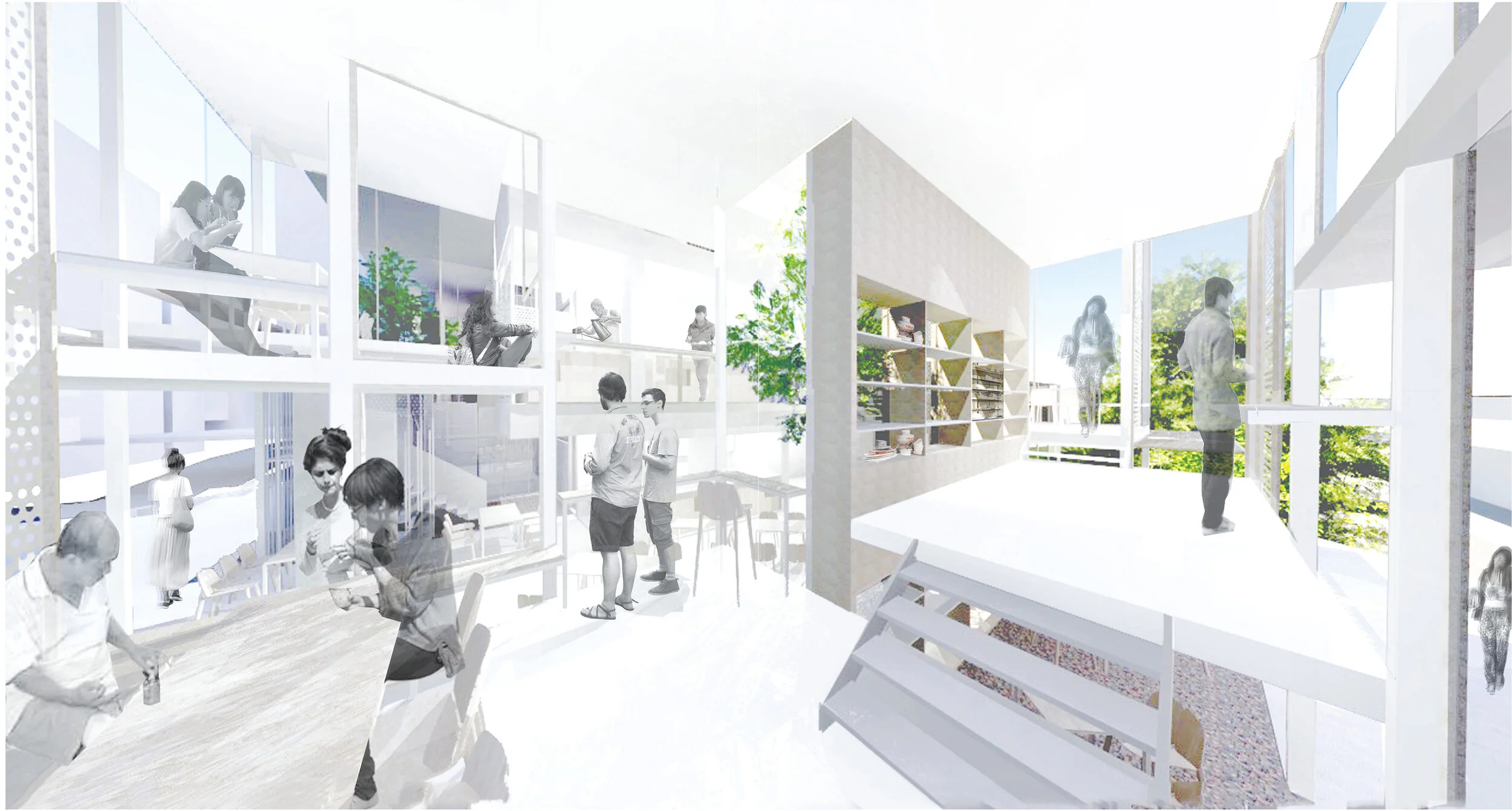 Kreta Ayer Community Centre is located within the cluster of a housing estate and it is extremely underused. It is used as a site to experiment on the different types of interactive boundaries like grids, glass, perforation and gradual level change to encourage more interaction from its users.